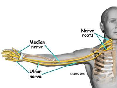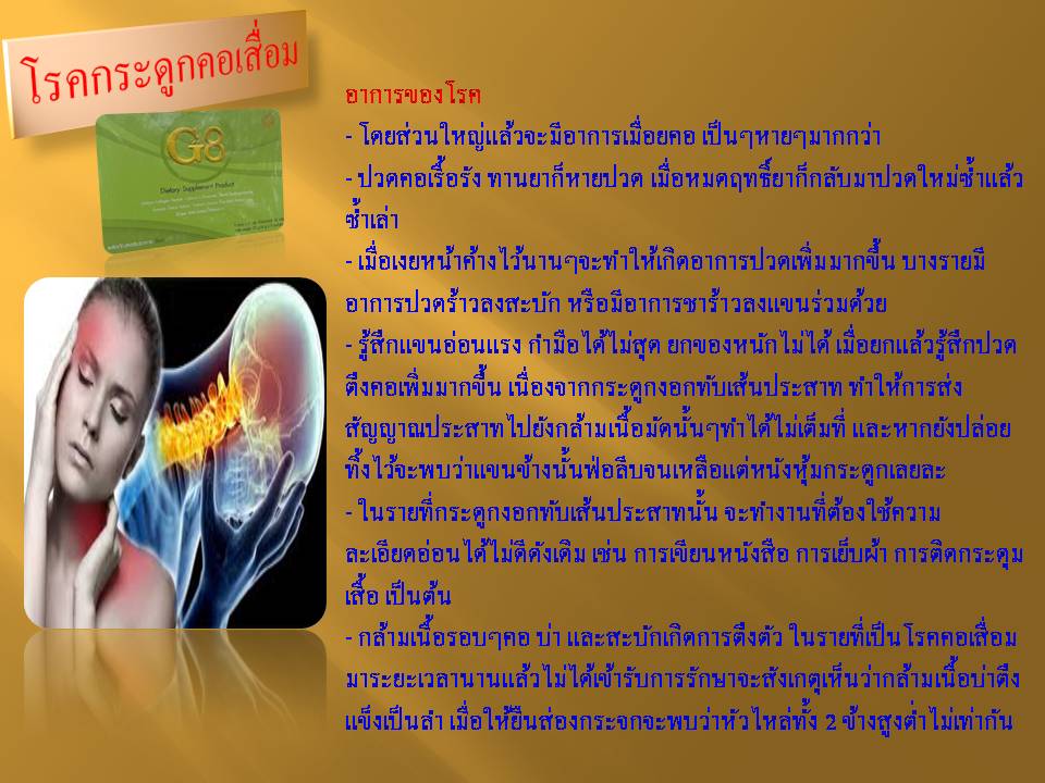 - มีอาการชา ปวดร้าวจากคอไปยังมือ หรือมีอาการอ่อนแรงของแขนและมือ